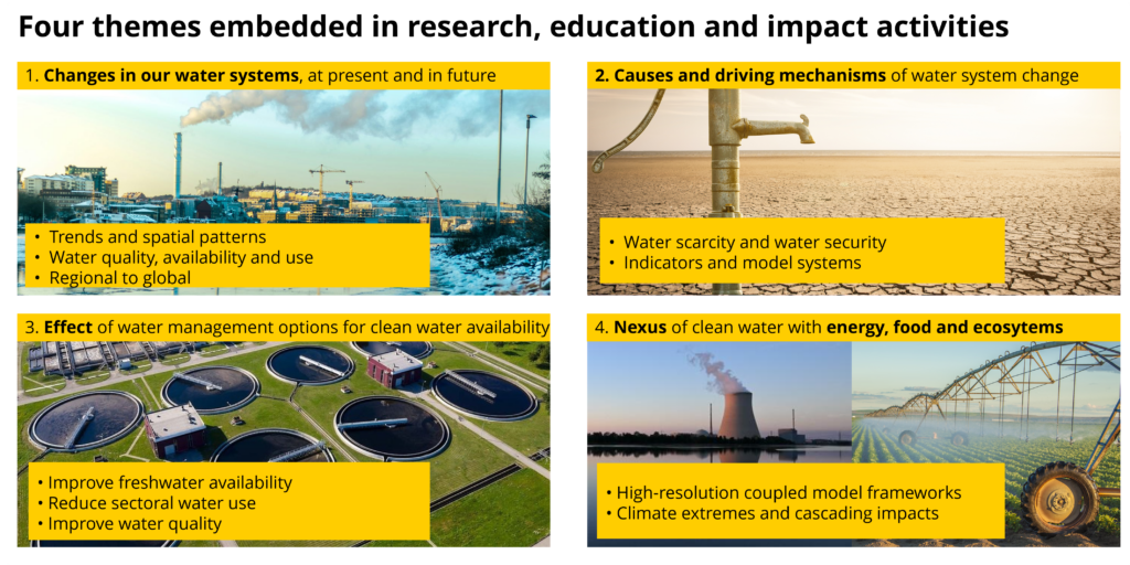 To contribute to an improved understanding of the state, drivers and adaptive solutions of clean water provision and water system challenges under changing climate and extremes, and socio-economic developments. Here account for the interactions between water (both quantity and quality) with different nexus actors, particularly energy, food, domestic use and ecosystems.