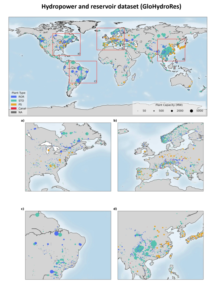 A comprehensive, open-access global dataset has been developed that integrates hydropower plant and reservoir information. GLoHydroRes offers key attributes for hydropower plants (e.g., head, installed capacity) and detailed reservoir characteristics (e.g., dam/reservoir location, area, volume) including ~ 7,775 hydropower plants across 128 countries.